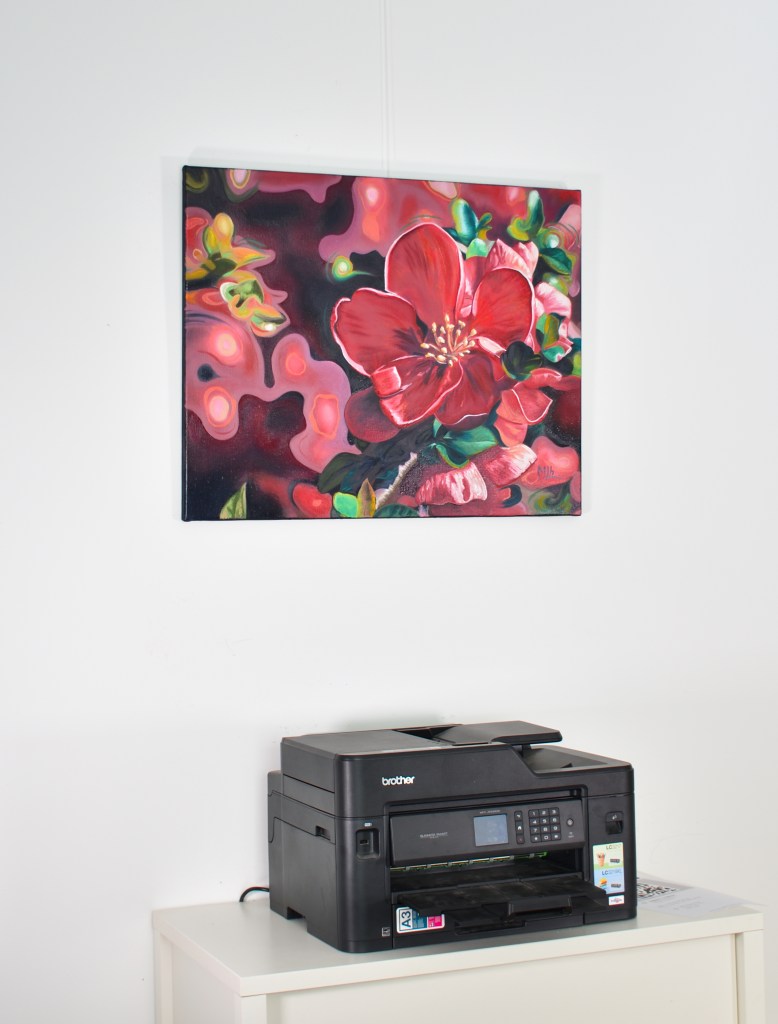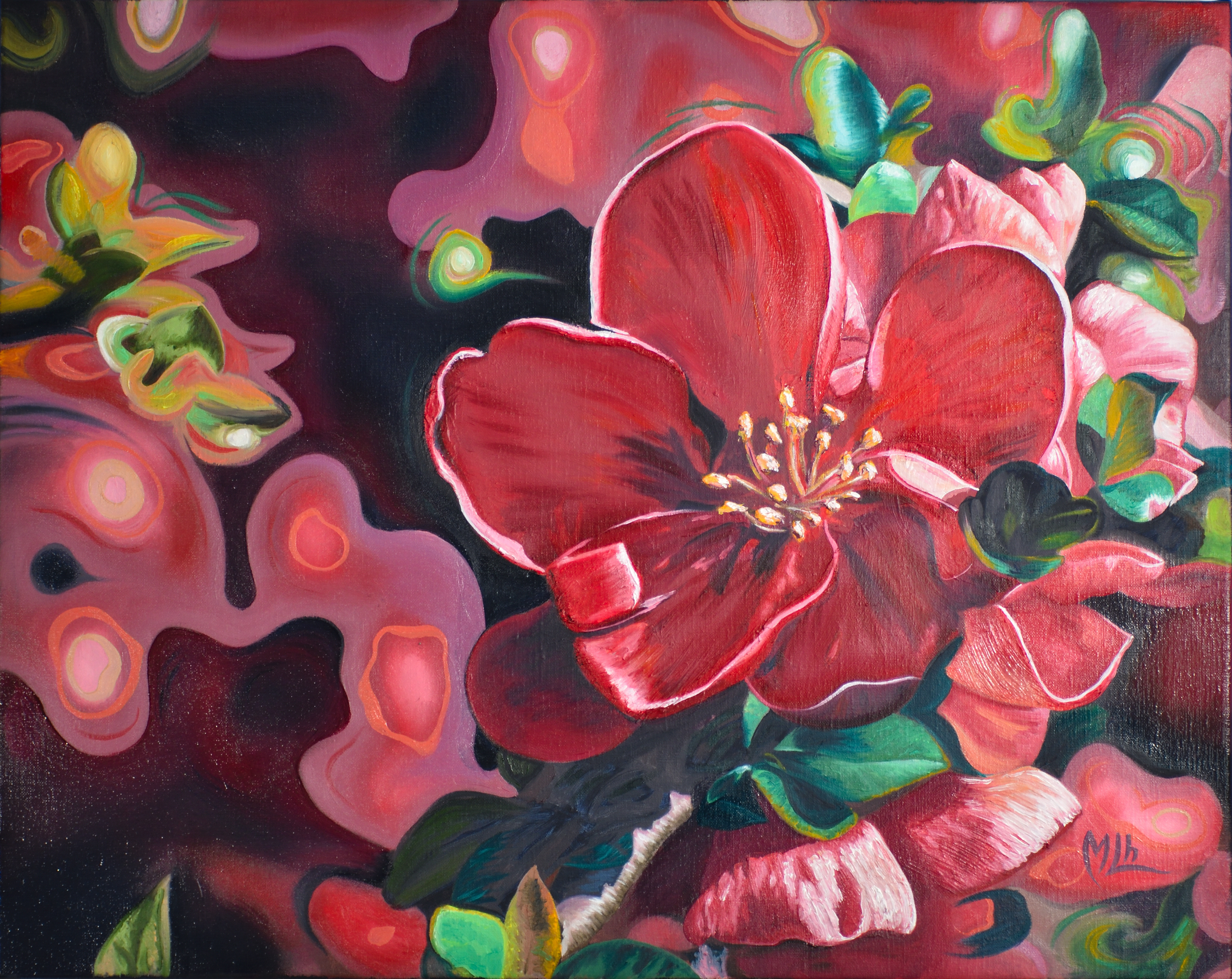 Inspiré de la floraison du cognassier du Japon dans mon jardin.