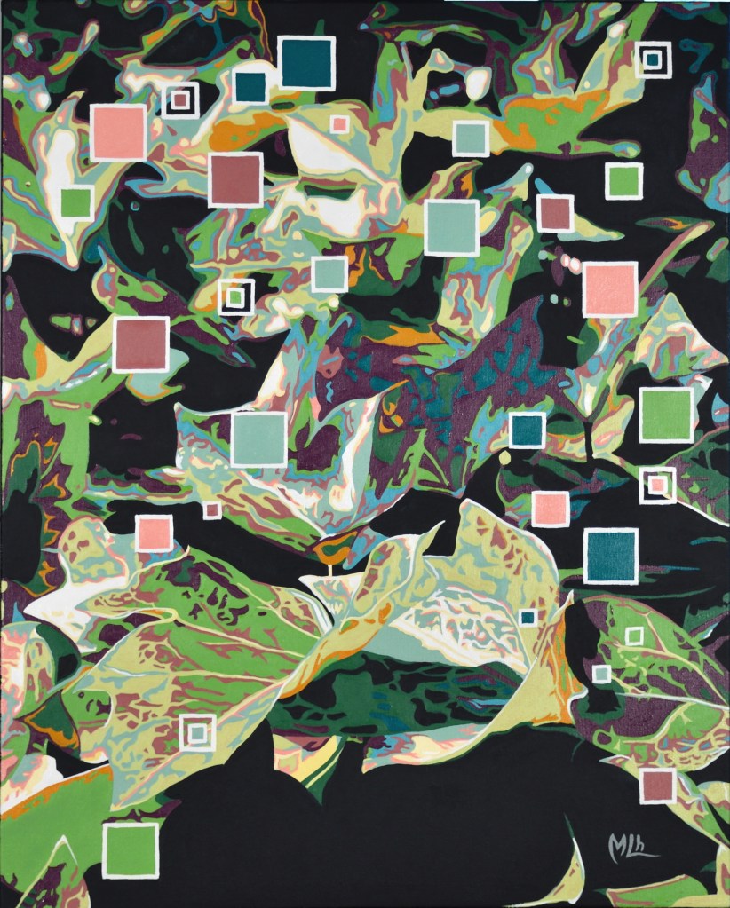 « Lierrarium » invite le spectateur dans un univers vibrant où feuillage abstrait et précision géométrique se rencontrent. Cette œuvre d’art présente un riche mélange de verts, parsemé de carrés colorés qui créent un contraste saisissant sur un fond sombre. La composition dynamique insuffle mouvement et énergie, en faisant un point focal captivant pour toute pièce. Idéale pour ceux qui souhaitent embellir leur intérieur d’une touche d’art contemporain, cette pièce saura inspirer et dynamiser.